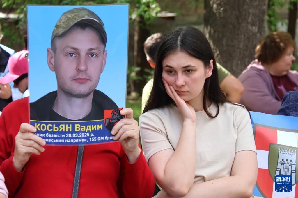 5月23日,乌克兰民众举着一名失踪军人的照片寻求帮助。新华社发(彼得·德鲁克摄)