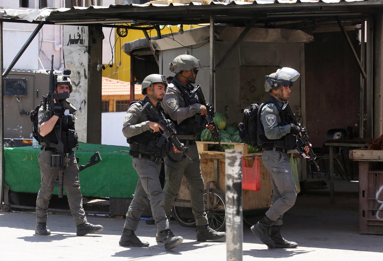 5月20日,以色列警察在约旦河西岸城市纳布卢斯郊区的阿斯卡尔难民营附近开展行动。新华社发(尼达尔·艾仕塔耶摄) 2023年10月新一轮巴以冲突爆发以来,双方在约旦河西岸的矛盾急剧激化,以方控制明显收紧,以军行动大幅升级。