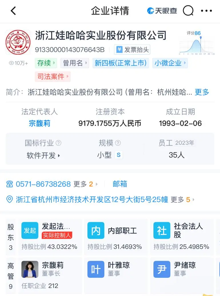 近日,浙江娃哈哈实业股份有限公司(以下简称娃哈哈实业公司)发生工商变更,宗庆后卸任法定代表人、董事长、总经理,由宗馥莉接任法定代表人、董事长。同时,公司多位主要人员均发生变更。