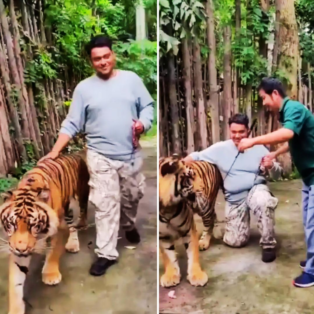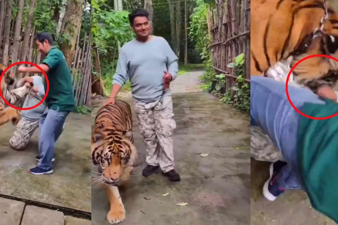 该景点以“一生仅有一次的与虎互动体验”为卖点,吸引众多游客前往。事发时,这名游客手持链条与老虎并排站立,驯兽师正用棍棒指挥老虎保持坐姿。视频显示,当游客持续抚摸老虎背部靠近屁股时,老虎突然转身扑咬,现场顿时陷入混乱,游客发出惊恐尖叫。所幸工作人员及时干预,游客仅受轻伤。