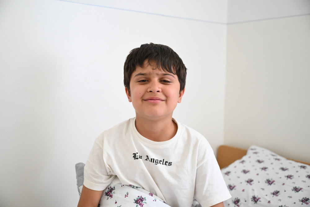 这是5月31日在塔吉克斯坦杜尚别的防盲合作中心病房拍摄的刚刚摘掉纱布的男孩伊布罗西姆。他接受的治疗很成功。新华社记者 李任滋 摄