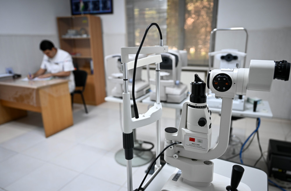 5月31日,在塔吉克斯坦杜尚别,医务人员在防盲合作中心工作。新华社记者 李任滋 摄