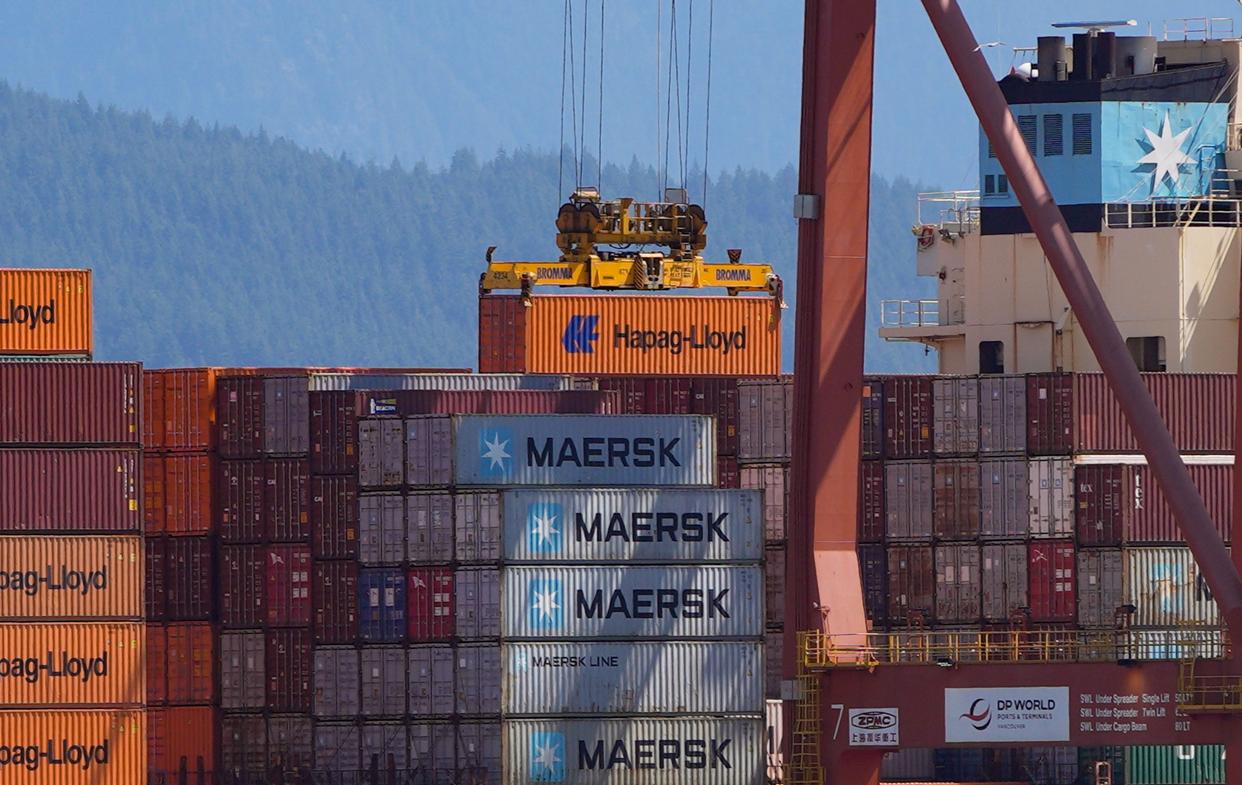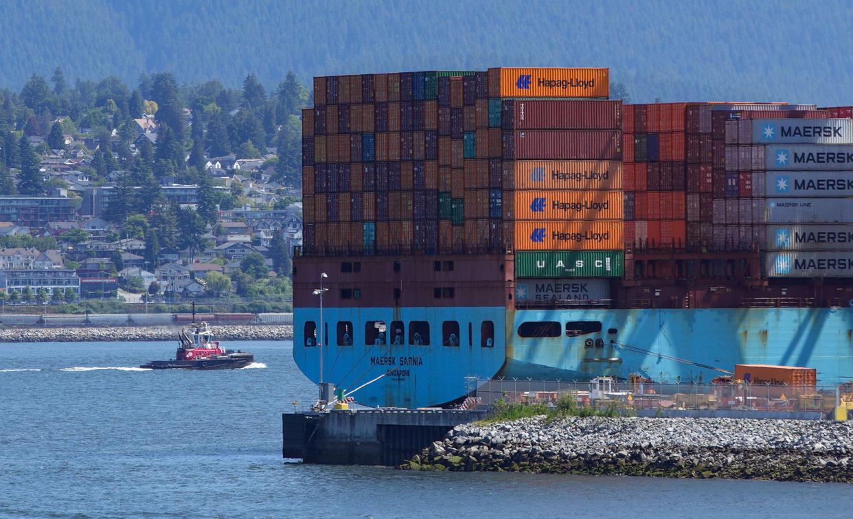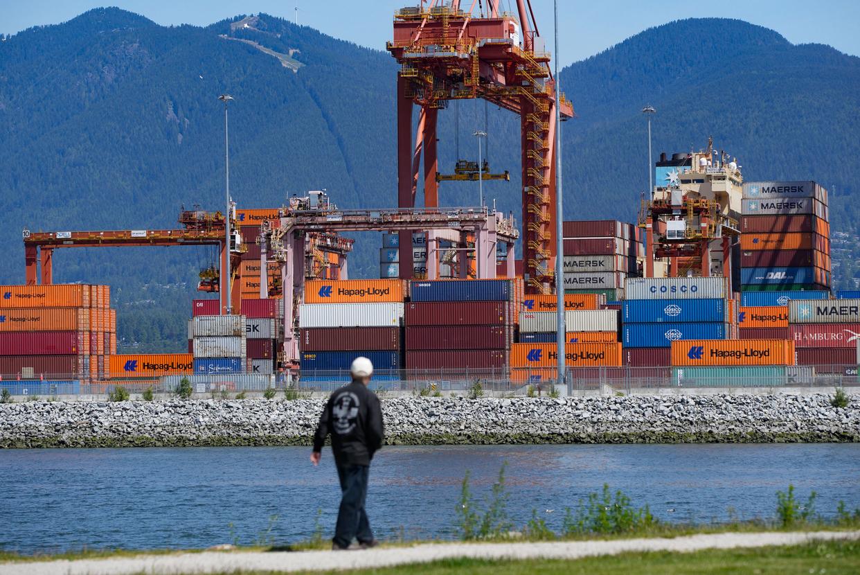 这是6月5日在加拿大温哥华港口集装箱码头拍摄的集装箱船。新华社发(梁森摄)