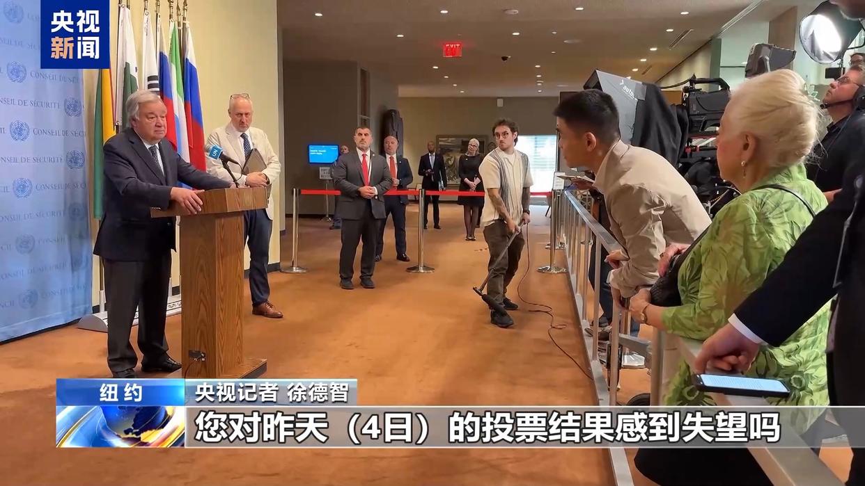 6月5日,联合国秘书长古特雷斯表示,坚持“两国方案”至关重要。在回答央视记者提问时,古特雷斯还对4日安理会加沙人道主义决议草案遭美国否决表示了失望。