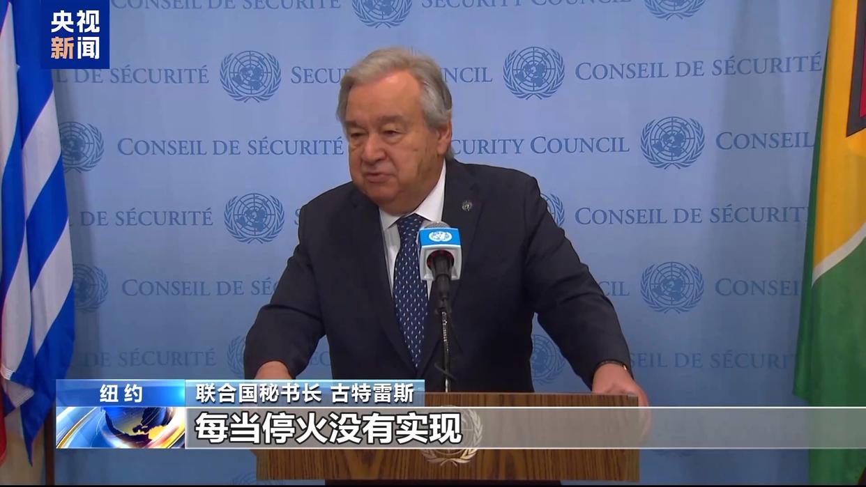 联合国秘书长 古特雷斯:当然,正如我所说,每当停火没有实现,被扣押人员没有获释,人道援助没有发放,或者援助的分发方式让大量巴勒斯坦人的生命处于危险中时,我们都会感到失望。