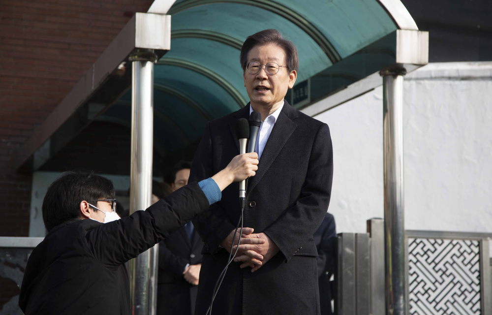 2024年1月10日,李在明遇袭受伤后从首尔大学医院出院时发表讲话。新华社发(全休相摄)