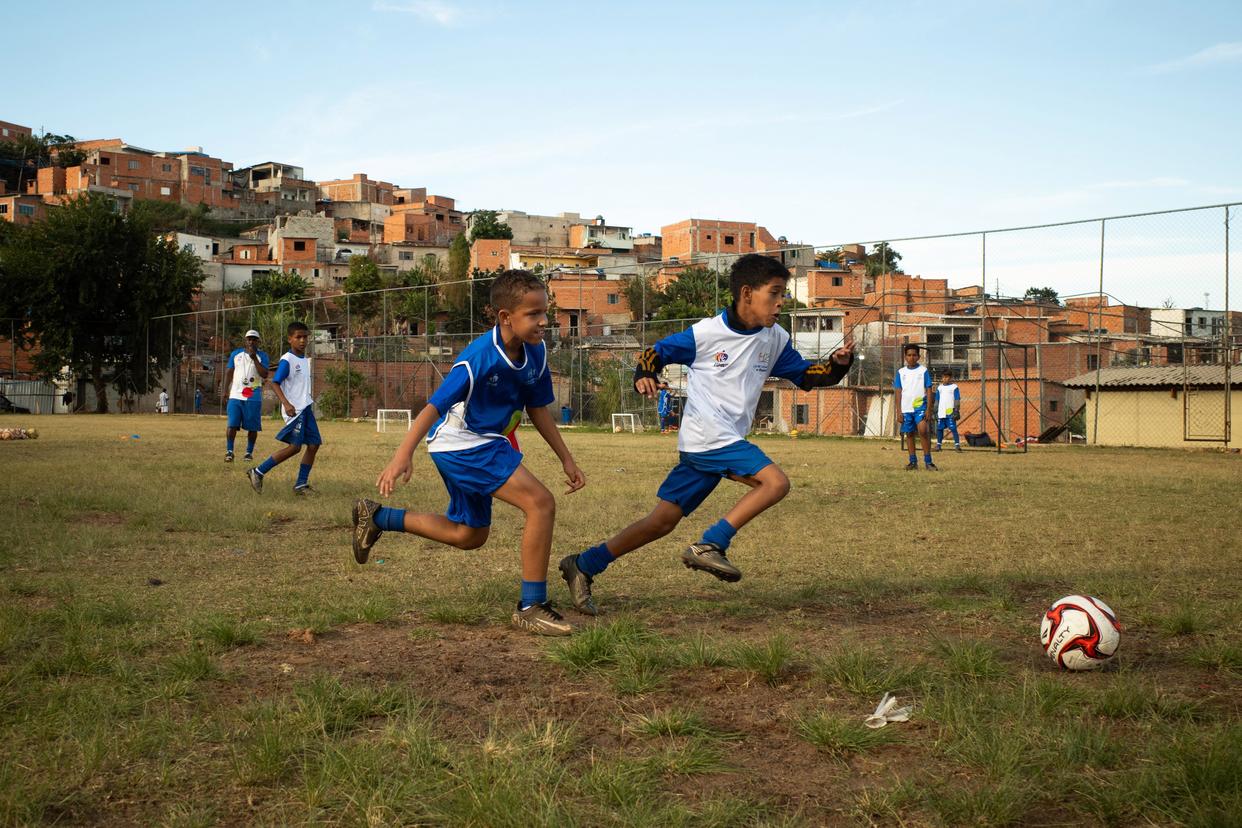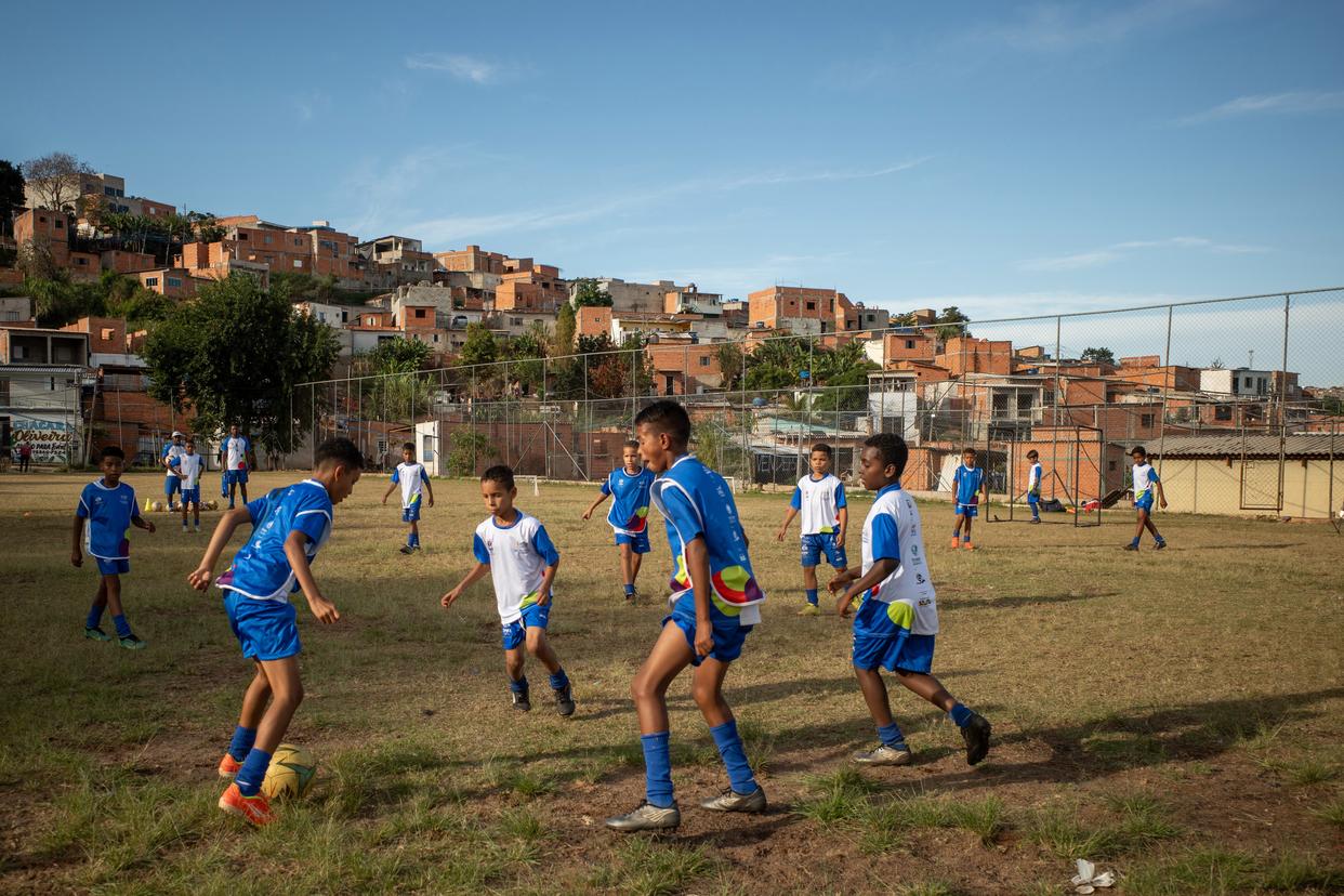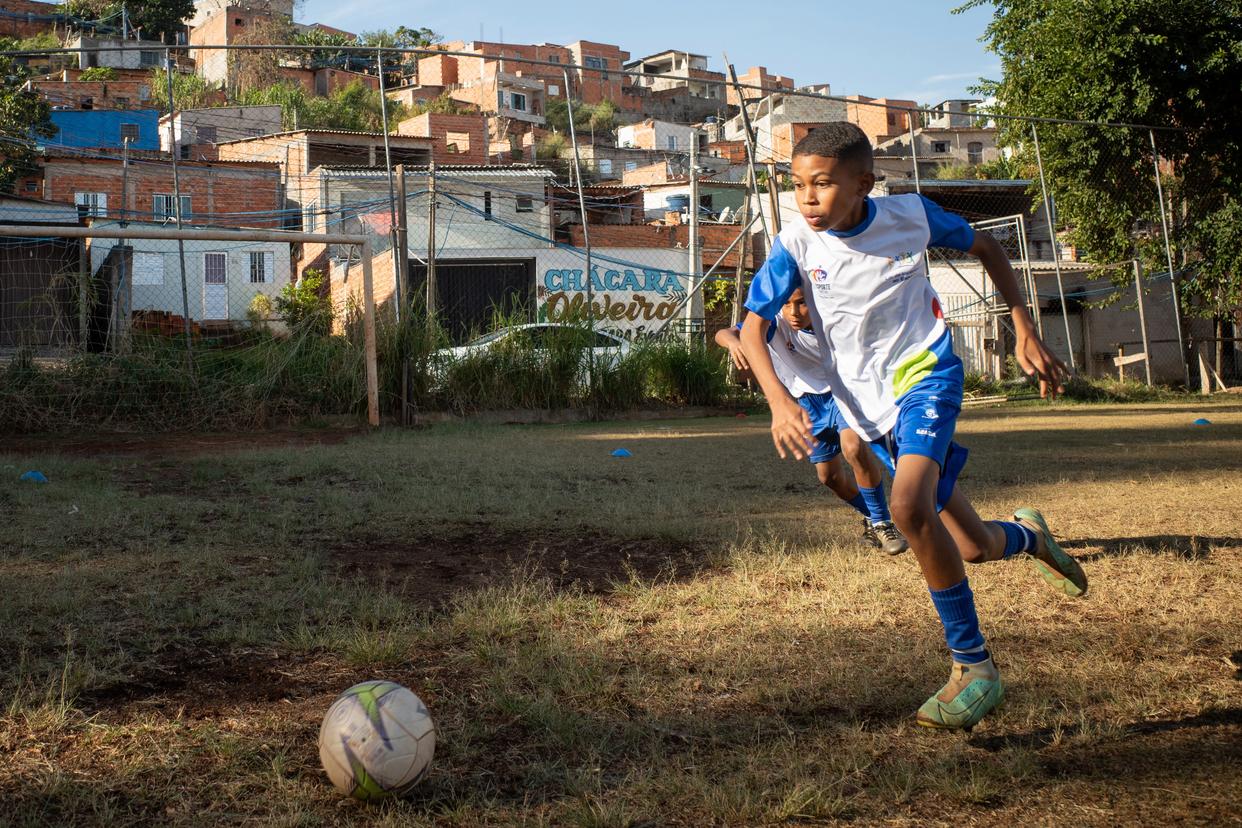 在巴西圣保罗州坎皮纳斯市西部的奥齐耶尔社区,红砖小屋密集排列,一座足球场在其中格外醒目。尽管草坪略显不平,球门布满锈迹,但这丝毫不影响一百多名巴西青少年在这里挥洒汗水,追逐他们的足球梦想。