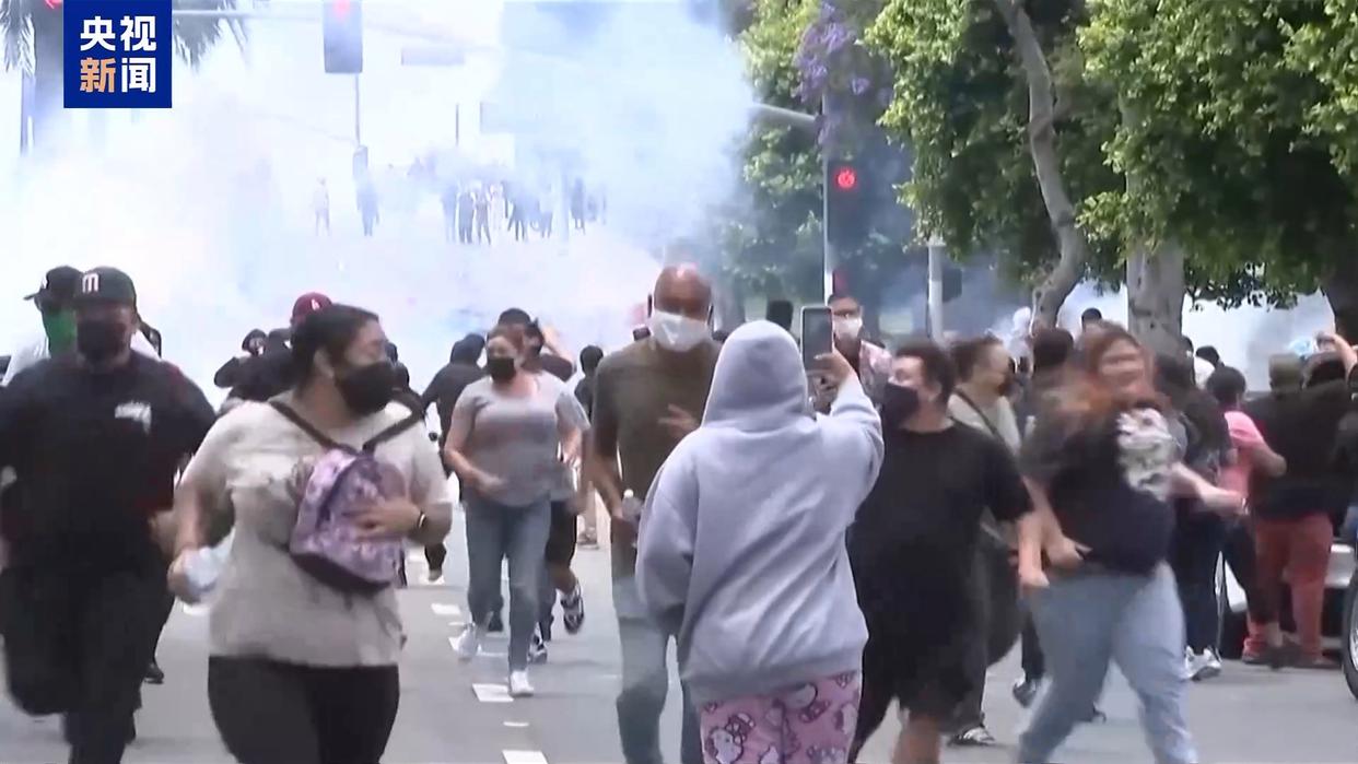 自6日上午开始,美国移民与海关执法局等联邦机构出动大批执法人员,在加利福尼亚州洛杉矶县多地展开针对非法移民的执法行动,引起大量街头对峙、混乱和冲突。当地时间7日,执法人员连续第二天与当地居民发生冲突。