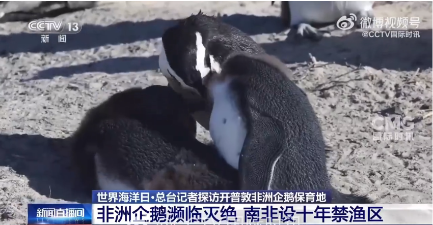 非洲企鹅又叫南非斑点环企鹅、黑足企鹅,是南部非洲沿海地区的特有品种。非洲企鹅主要生活在南非西开普省和东开普省,目前面临极度濒危甚至野生灭绝的威胁,南非环保组织要求政府为保护非洲企鹅设立禁渔区。今年3月,一项为期10年的协议被批准,在南非企鹅六个主要繁殖地周围设立禁渔区,以保护企鹅的繁衍与生息。