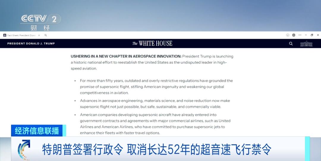 白宫在6日发布的公告中说,工程和技术的进步使得超音速航空旅行“不仅是可能的,而且是安全、可持续和具有商业可行性的”。此次签署的行政令指示美国联邦航空管理局制定临时的基于噪声的认证标准。