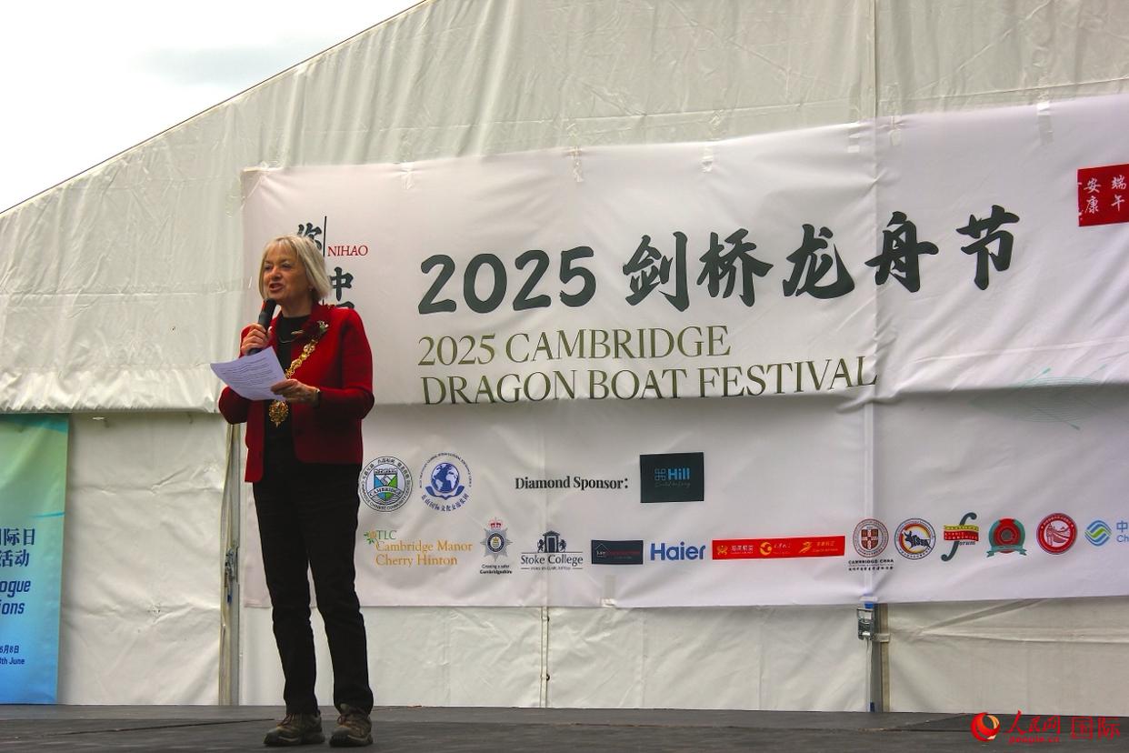 剑桥郡国王代表弗朗西斯·伯基特出席活动,热烈欢迎冠军队伍——中国广东汕头潮阳龙舟队。他表示,潮阳队的到来为赛事增添活力,让当地民众近距离感受中国传统文化,对促进英中民间交流具有深远意义。新上任的剑桥市长黛娜·庞兹表示,在当今世界日益倾向孤立主义的背景下,她期望凭借自身艺术背景搭建国内外沟通桥梁。她高度肯定了剑桥龙舟节在促进英中文化交流、推动文明互鉴中的重要价值,呼吁以文化为纽带,构建和谐包容的世界。