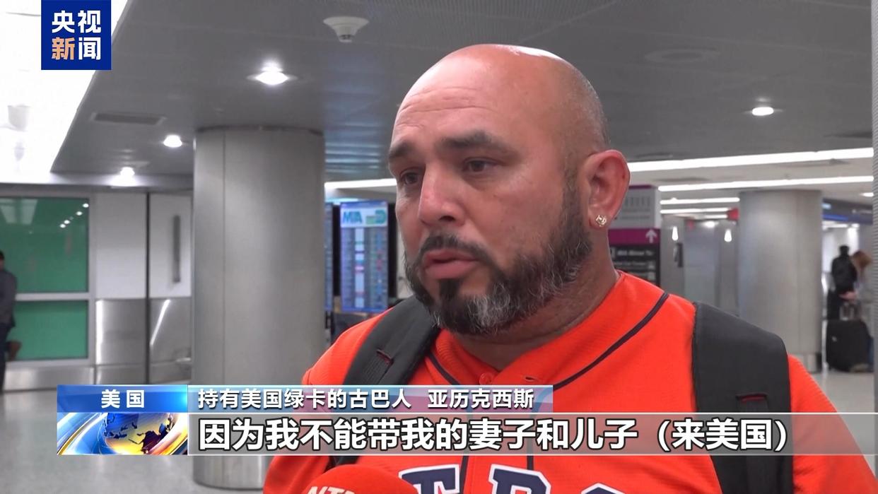 持有美国绿卡的古巴人 亚历克西斯:我受到了入境限制令的影响,因为我不能带我的妻子和儿子来美国。我为他们提出过申请,但是现在他们不会获得签证,他们再也不能来美国了。