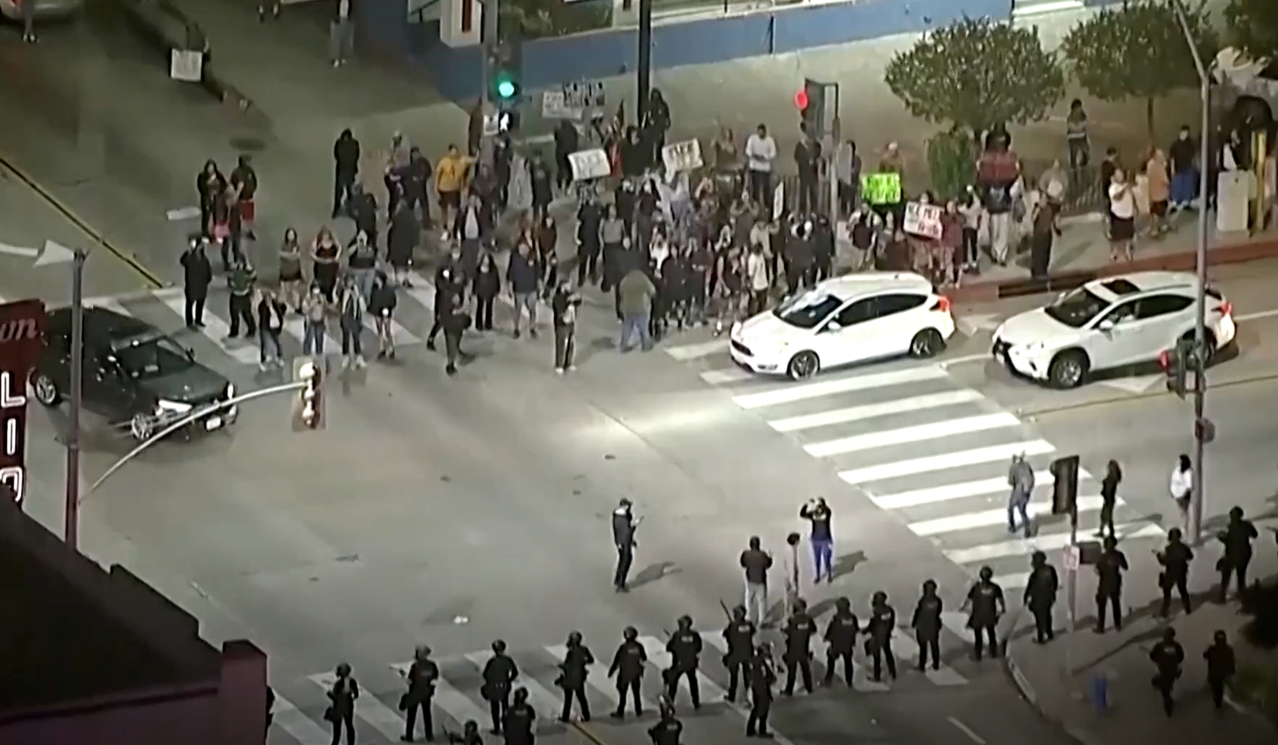 美国洛杉矶多家酒店外爆发抗议活动 警方出动