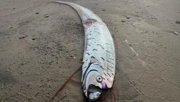 本月初,一条搁浅在澳大利亚塔斯马尼亚州海滩的“末日鱼”,被正在附近遛狗的居民西比尔•罗伯逊发现。她将鱼的照片发到社交媒体一科学小组内,被告知这是一条皇带鱼,又称“地震鱼”。之后,澳大利亚当局采集了这条不常见的皇带鱼的样本,以便由专家进行研究。