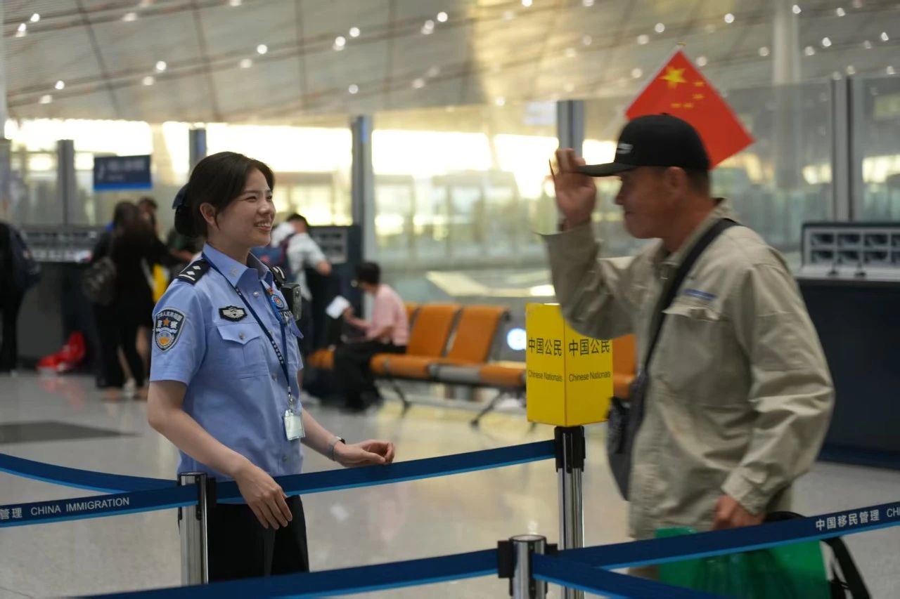 “欢迎回家!”6月20日18时53分,首架接返自伊朗撤离中国公民临时航班抵达北京首都国际机场。此趟航班自土库曼斯坦阿什哈巴德起飞,机上共搭载330名乘客,均为中国公民。北京边检总站提前做好准备,为归国公民高效办理了入境边防检查手续,迎接同胞回家。