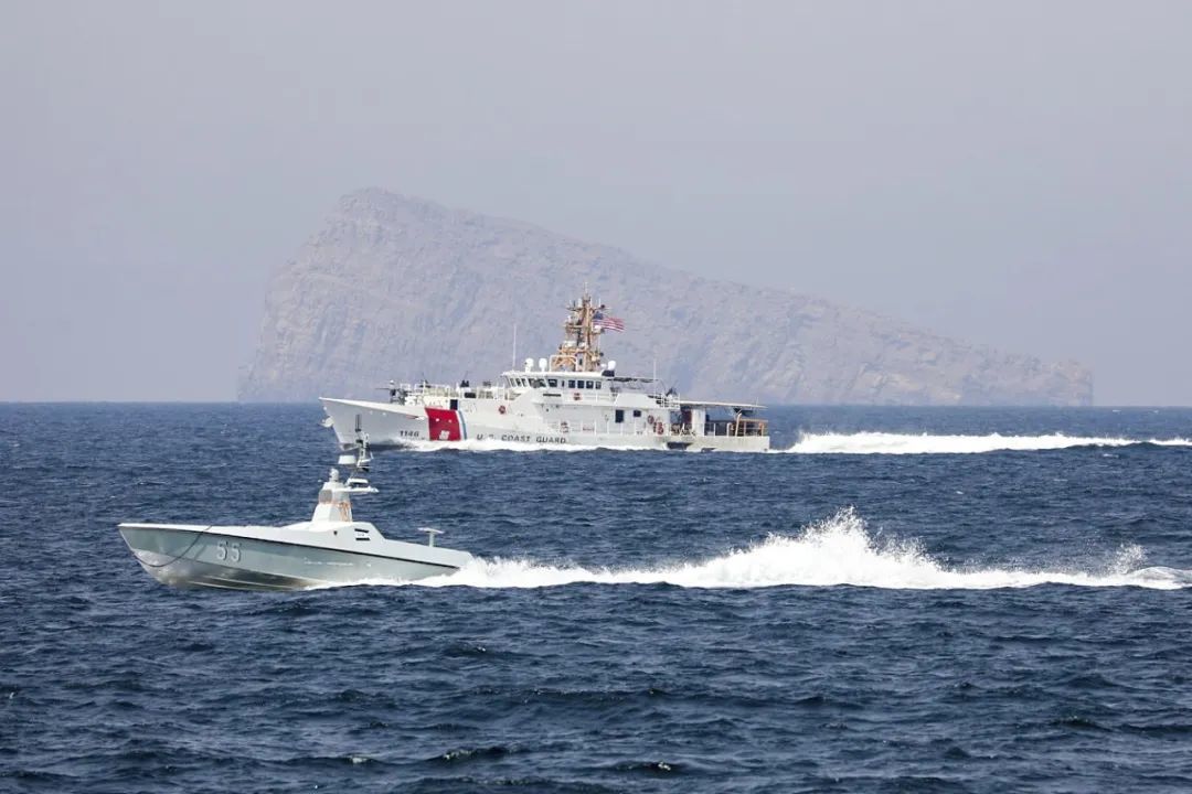 当地时间2023年4月19日,美国无人驾驶船首次通过霍尔木兹海峡。图源:视觉中国
