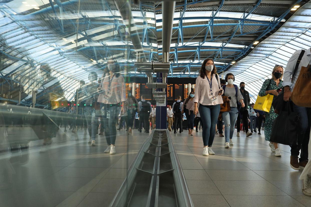 2021年8月5日,乘客走在英国伦敦的滑铁卢火车站内。新华社发(蒂姆·爱尔兰摄)