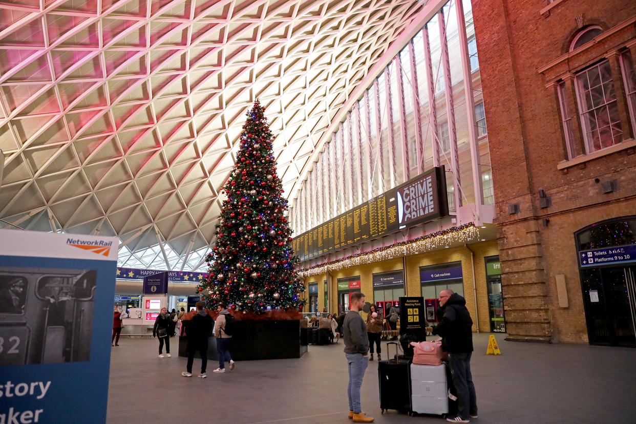 2022年12月17日,旅客站在英国伦敦国王十字火车站内。新华社记者李颖摄