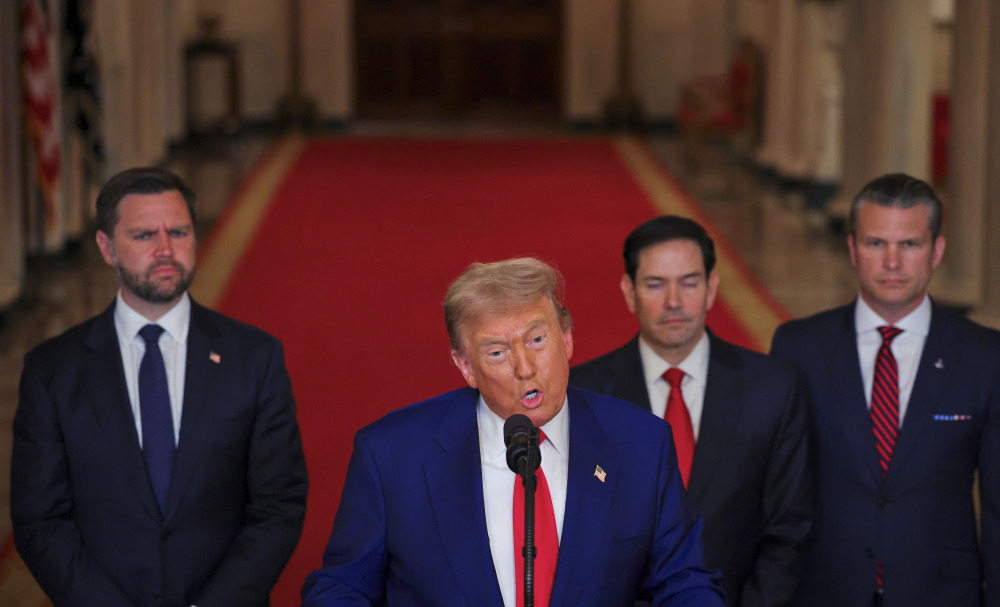 6月21日,美国总统特朗普在华盛顿白宫发表讲话。当天,特朗普宣布美军“成功打击”伊朗三处核设施。新华社/美联