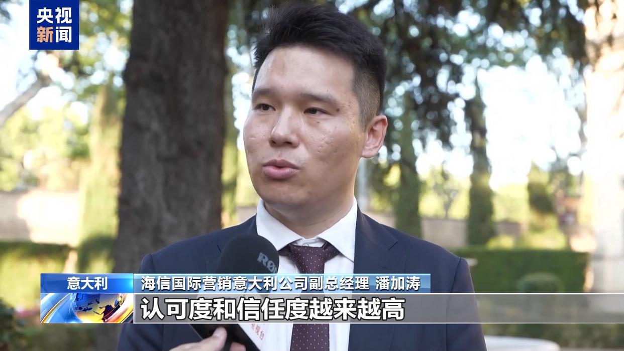 海信国际营销意大利公司副总经理 潘加涛:意大利消费者对中国品牌的认可度和信任度越来越高,这就是中意两国关系一个很好的印证。意大利消费者对中国品牌的认可,从最初的低端产品到现在的中高端产品,这样对中国品牌信任度的加深,也反映了两国关系更好地融合。(总台记者 白洁 杨明交 殷欣)