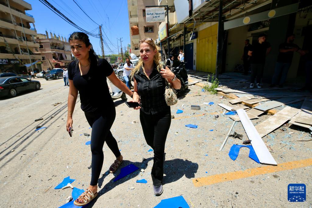 6月27日,在黎巴嫩奈拜提耶,人们走过遭以色列空袭的街区。新华社发(阿里·哈希绍摄)
