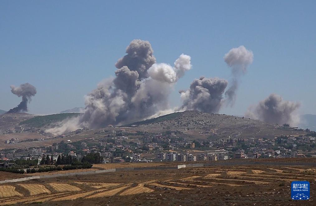 6月27日,黎巴嫩奈拜提耶遭以色列空袭的地点冒出浓烟。新华社发(马希尔·卡马尔摄)