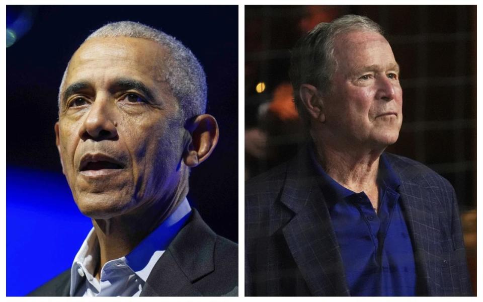 △美国前总统奥巴马(左)和小布什(右)(资料图)