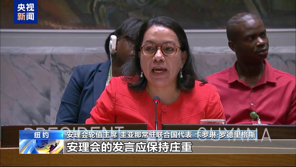 安理会轮值主席、圭亚那常驻联合国代表 卡罗琳·罗德里格斯:我只是想提醒大家,安理会的发言应保持庄重,避免人身攻击和插话。