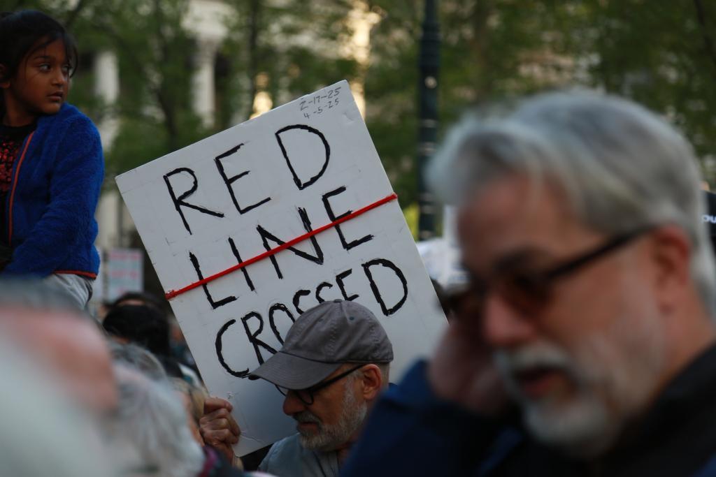 5月1日,人们手持标语在美国纽约参加抗议特朗普政府政策的集会和游行。新华社记者刘亚南摄美国国务院:本周推出“美国优先”援助机制