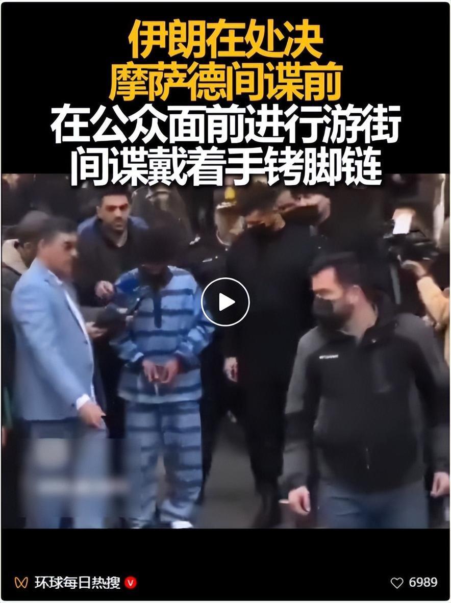 7月1日,伊朗新闻主播萨哈尔·埃马米在其个人账号发布视频并配文。伊朗在处决摩萨德间谍前,游街示众!