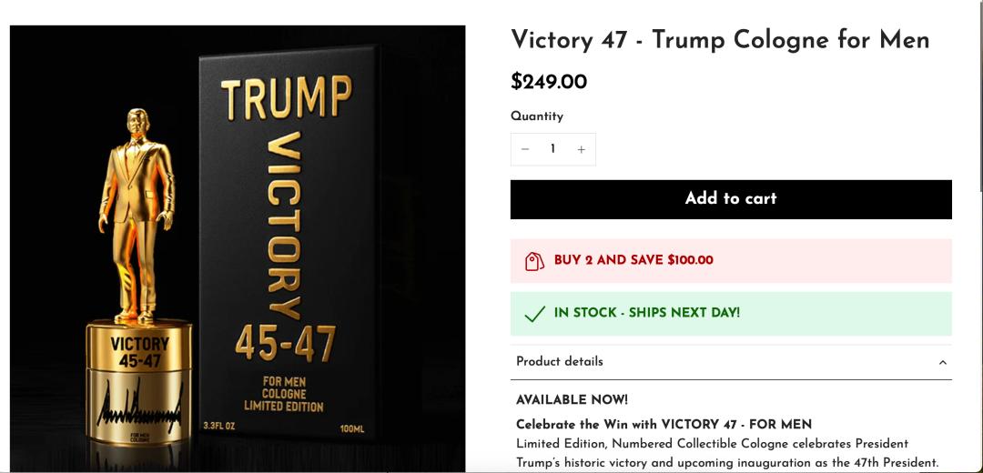 “购买特朗普香水”网站称:“这些是唯一由特朗普总统推出的官方香水!”该网站还称,这是购买特朗普香水的唯一官方渠道。