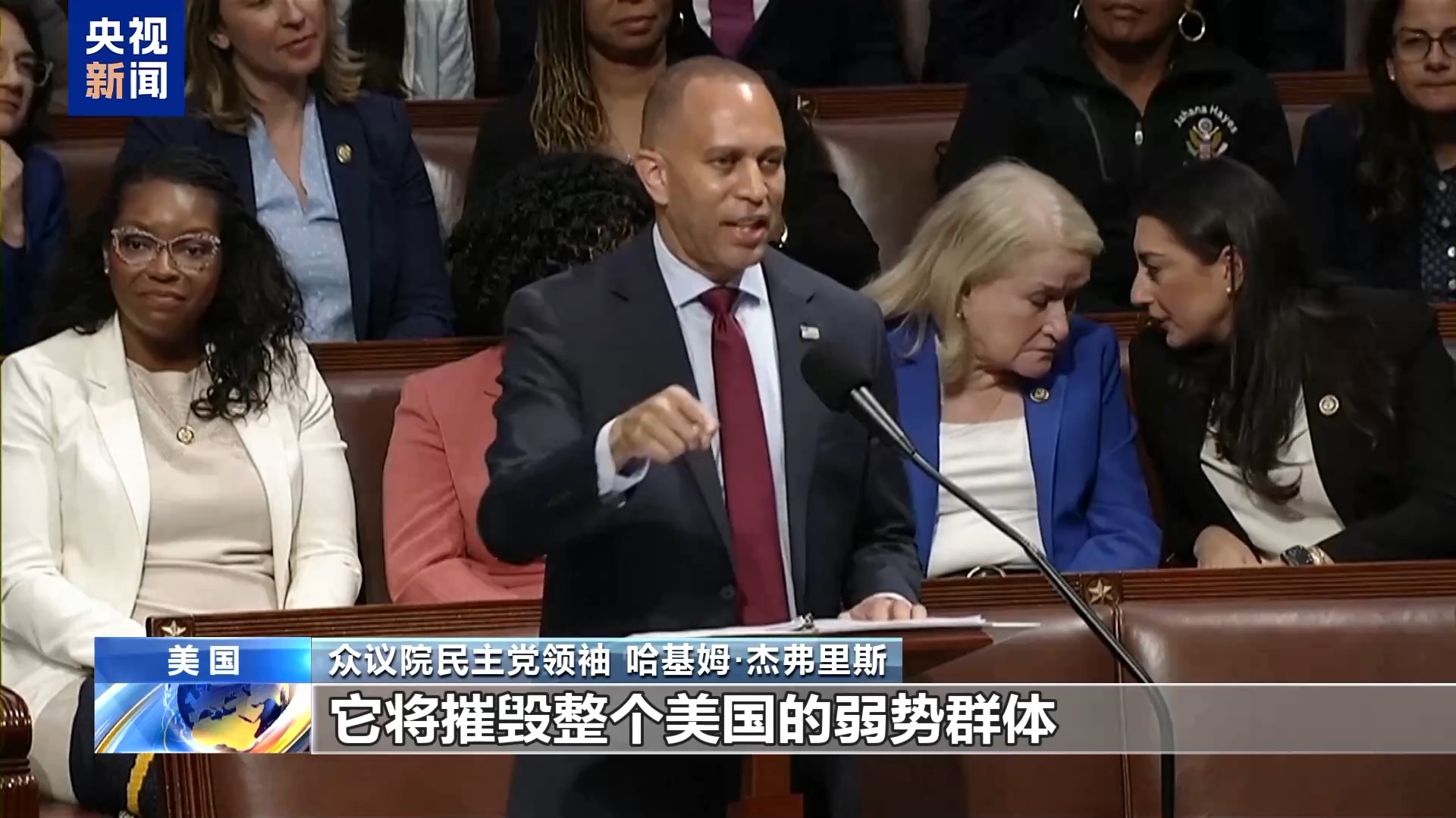 众议院民主党领袖 哈基姆·杰弗里斯:这项法案是美国历史上对医疗补助计划的最大削减,它将摧毁整个美国的弱势群体。我们强烈反对特朗普的这个“又大又丑”的法案。