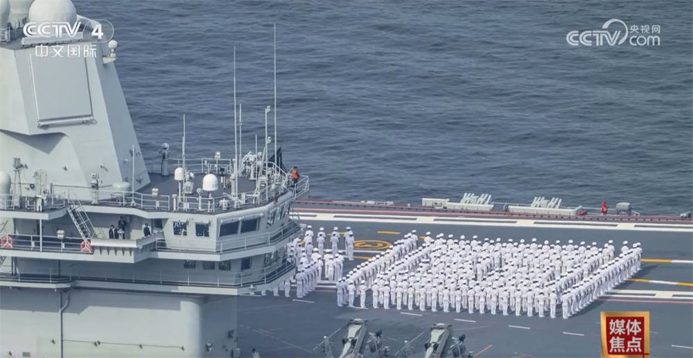 面对复杂多变的国际形势,中国首艘国产航母山东舰及其舰队3日—7日访问香港,“国之重器”高调亮相,维护主权,展示和平决心。这既是中国防务实力和军事自信的展现,也是为香港繁荣稳定保驾护航的承诺。山东舰飞行甲板上,舰载战机列阵,700多名海军官兵身着白色军装,列队排出“国安家好”,表达爱国爱港的深情和对香港同胞的美好祝福。