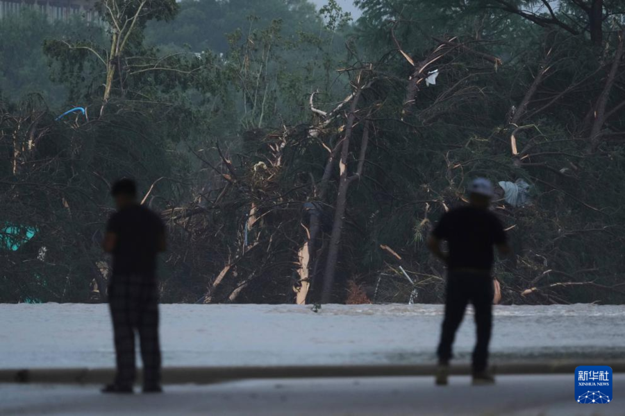 4日,在美国得克萨斯州克尔维尔市,人们在瓜达卢普河沿岸查看。