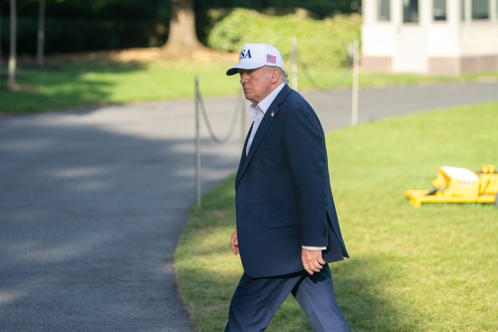 7月6日,美国总统特朗普乘直升机返回华盛顿白宫。新华社记者胡友松摄