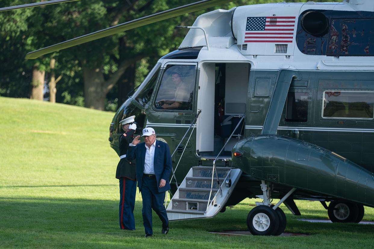 7月6日,美国总统特朗普乘直升机返回华盛顿白宫。新华社记者胡友松摄国防部擅自暂停军援?特朗普:我不知情
