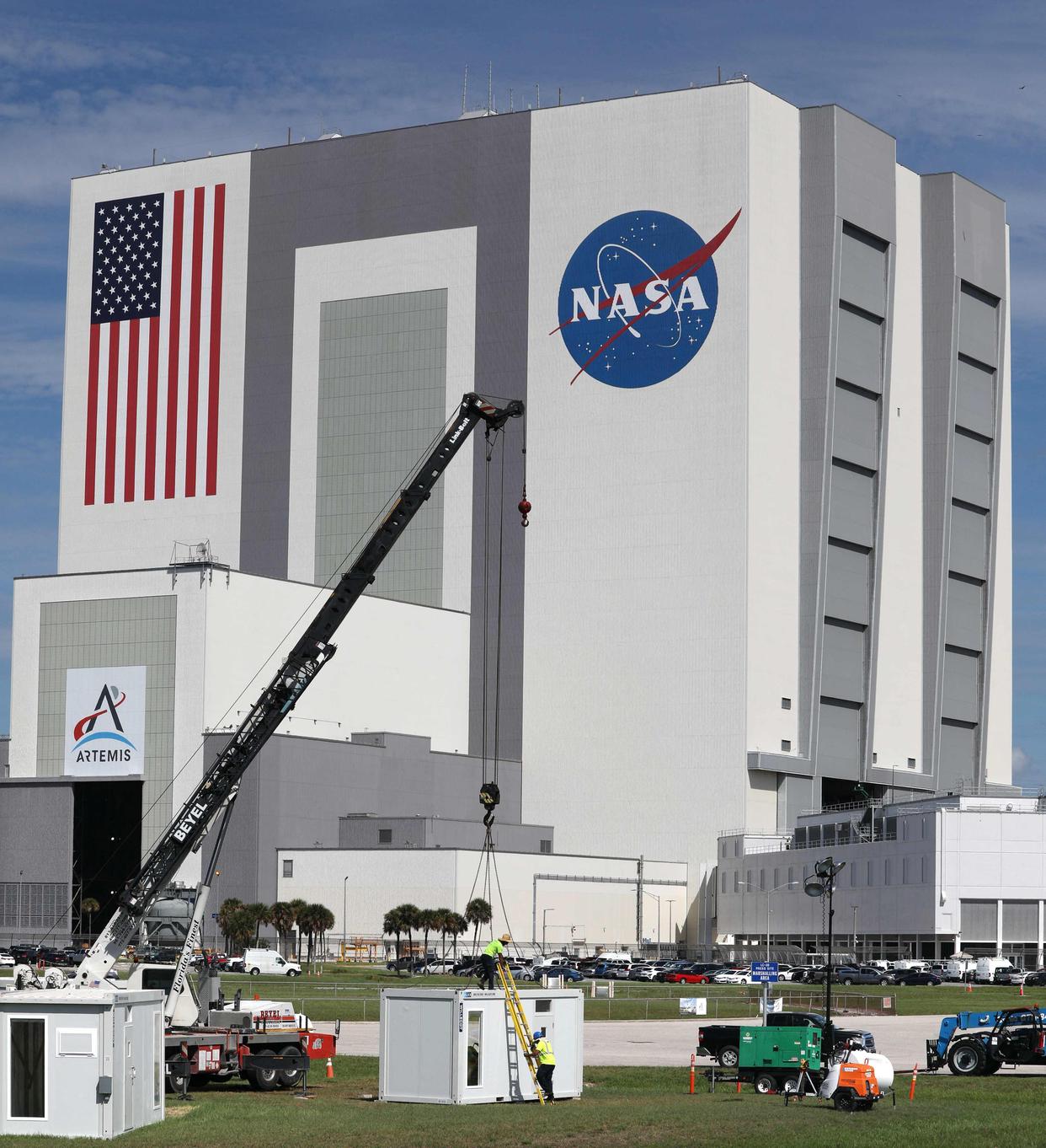 这是2022年8月23日,工作人员在美国佛罗里达州肯尼迪航天中心搭建临时工作间。新华社/法新 特朗普9日在社交媒体上发文说,达菲在处理国家交通事务方面表现出色,相信即便只是短期执掌NASA,他也将成为一名“出色的领导者”。