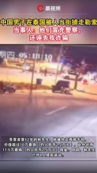 受害者是52岁的林先生,他被抢走两部手机,价值超过10万泰铢(约人民币2.2万元),此外还有11.5万泰铢(约人民币2.5万元)现金。目前,林先生已对4人提起诉讼。