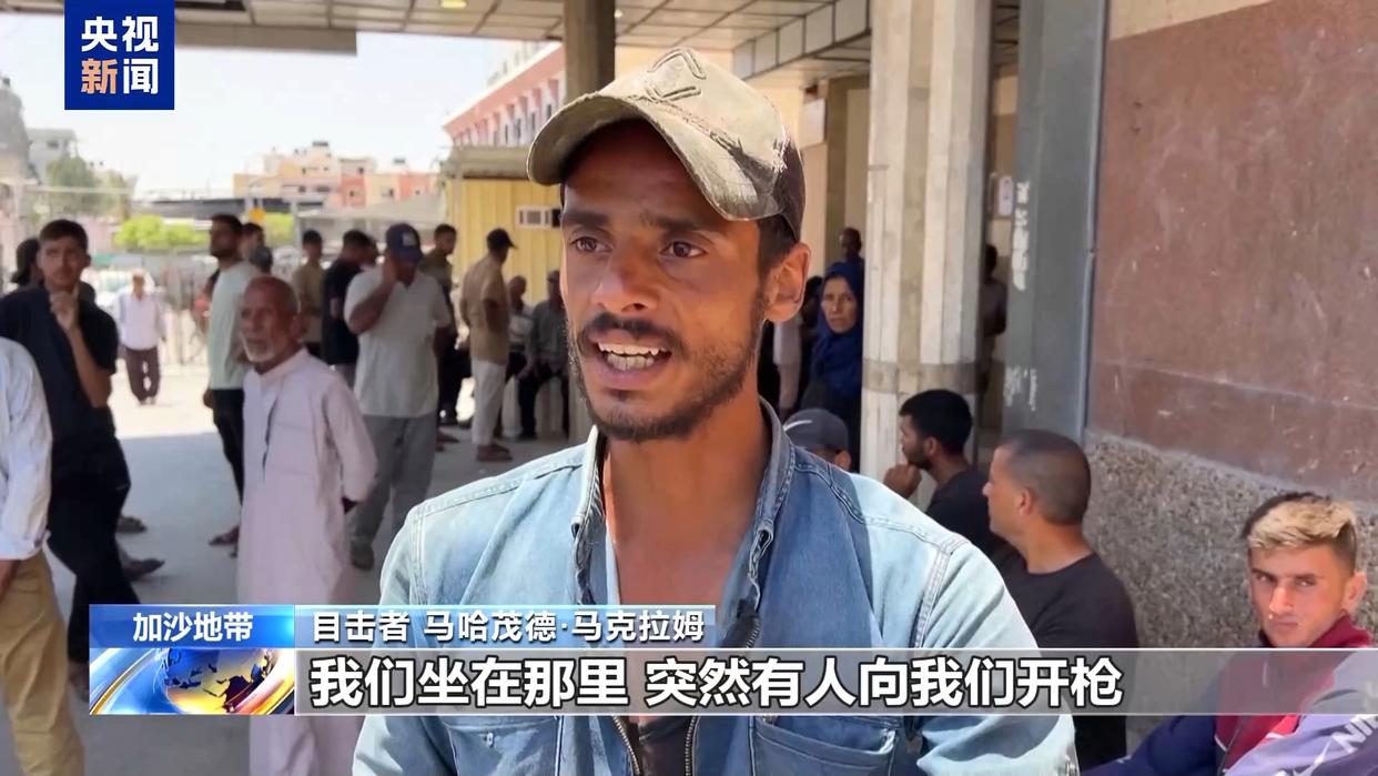 目击者 马哈茂德·马克拉姆:我们当时就在援助物资分发点那一带。我们坐在那里,突然有人向我们开枪,我们被困在火力网内长达五分钟。开枪的人是有意瞄准,并非胡乱射击,有的人被射中头部,有的人是躯干,我旁边的一个人被直接射中心脏。袭击者毫无慈悲之心,人们因为饥饿来到这里,结果却被打死,被装在裹尸袋里带回去。