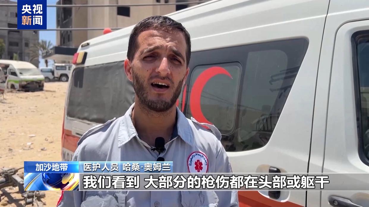 医护人员 哈桑·奥姆兰:我们看到大部分的枪伤都在头部或躯干。以军是在蓄意杀害这些人。以军利用援助政策进行大规模的屠杀,他们让民众前去领取每天的食物,等人们一到那里,就被冷血地杀害。