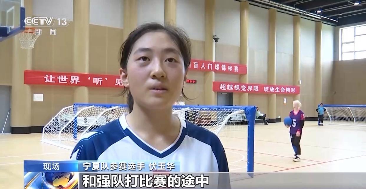宁夏队参赛选手 伏玉华:这是我第一次参加比赛,和强队打比赛的途中发现他们很厉害,我们也跟他们学到了很多。虽然我是一个盲人看不见,但自从学了盲人门球以后,好像找到了自己前行的方向,追寻自己的梦想。