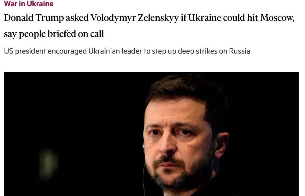 《金融时报》称,有熟悉此次通话内容的人士透露,该通话发生在美国独立日当天(7 月 4 日),特朗普在通话中问泽连斯基,如果美国给乌克兰提供远程武器,乌克兰能否用这些武器打击莫斯科。该报引用2名知情人士的说法称,特朗普在通话中是这样向泽连斯基提问的:“弗拉基米尔(泽连斯基),你能打击莫斯科吗?你能同时也打击圣彼得堡吗?”两名知情人士还给出了泽连斯基的回应:“完全可以,只要你给我们武器就行。”这些知情人士称,特朗普在通话中表达出了对打击俄罗斯纵深想法的支持,认为只有让俄罗斯“感到痛楚”才能迫使其进行谈判。知情人士还透露,就在特朗普在与泽连斯基进行这番通话的前一天,他刚与普京结束了一场被他形容为“糟糕”的通话,因为普京拒绝按照特朗普提出的方案与泽连斯基谈判。《金融时报》认为,特朗普的这一提问不仅反映出他在乌克兰对俄罗斯本土发动纵深打击上的态度,还标志着他对俄乌冲突立场的“重大转变”,因为去年他在竞选时的承诺是,他会让美国退出包括俄乌冲突在内的国外军事冲突。《金融时报》称,尽管眼下尚不确定特朗普会不会真给泽连斯基提供能纵深打击俄罗斯本土的武器,但上周美方曾在一场有美国、北约以及乌克兰官员参加的会议中,交给乌方一份可以通过欧洲第三方提供远程武器的清单。但有知情人士称,对于乌克兰最想要的“战斧”导弹,特朗普也和前总统拜登一样存在一些担忧,怕泽连斯基一旦用起来就不知道收敛。知情人士称,特朗普在与泽连斯基的通话中倒是提到了美国陆军战术导弹系统(ATACMS)。这种导弹的射程(最高300km)虽然没有“战斧”的射程(1600km)远,但也可以打到俄罗斯本土——尽管到不了莫斯科和圣彼得堡。目前,白宫和乌克兰官方尚未就《金融时报》披露的这一情况做出回应。而俄罗斯此前曾表示,如果西方给乌克兰提供在俄罗斯看来越线的武器,俄方将会对西方实施报复。比如,在乌克兰先前使用了美国陆军战术导弹系统(ATACMS)打击俄方后,俄方就曾测试了其最新的远程洲际导弹“榛树”(Oreshnik),并调整了俄罗斯使用核武器的门槛。