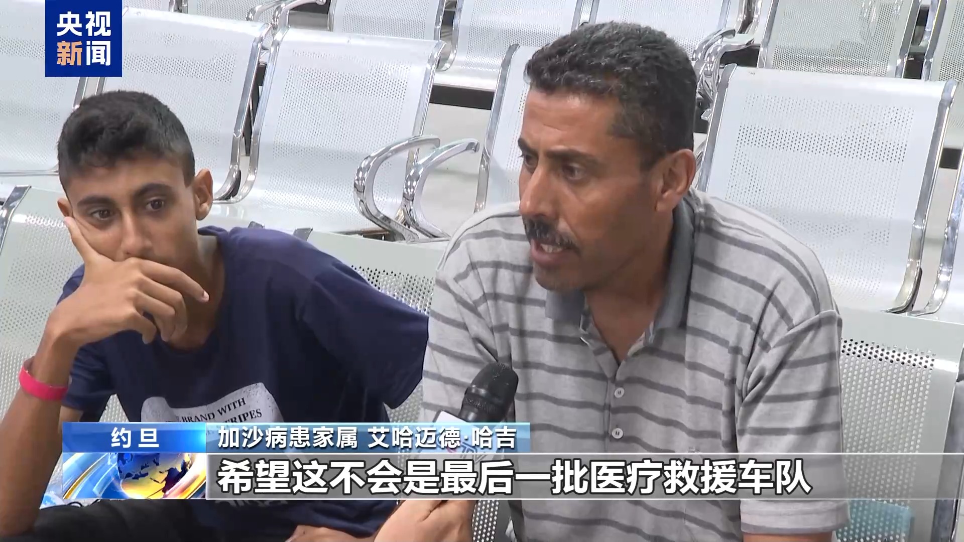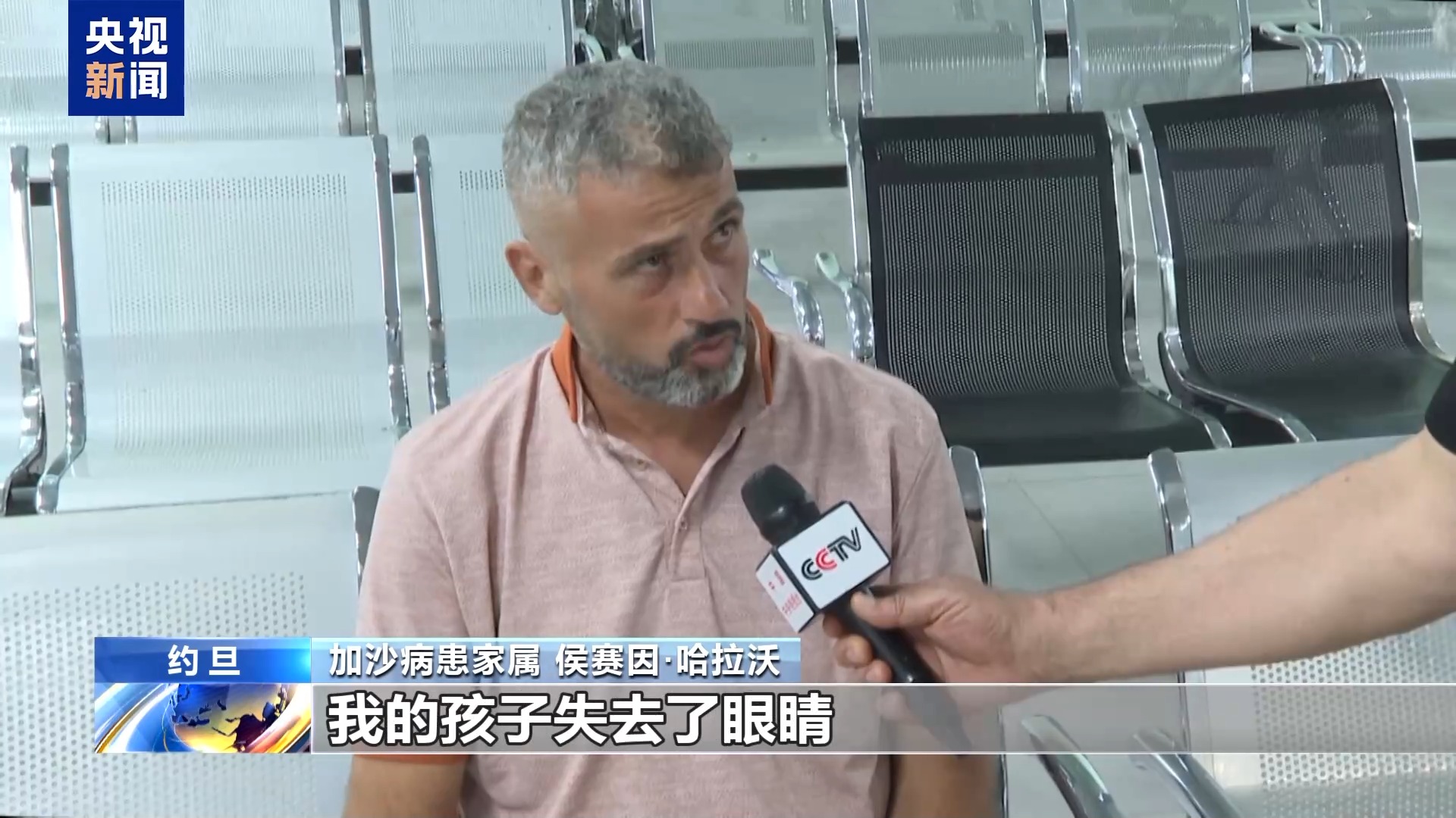 加沙病患家属 侯赛因·哈拉沃:我是受伤者的父亲,我的孩子失去了眼睛,我们这次来是希望能接受治疗。对所有人表示衷心感谢。我们的旅程刚开始时在加沙遇到了一些困难,但后来进展顺利。