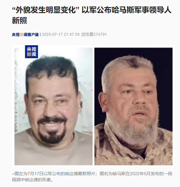 当地时间7月17日,以色列国防军阿拉伯语发言人阿德拉伊在其社交账号发布消息,公布了两张加沙地带军事领导人哈达德的最新照片。