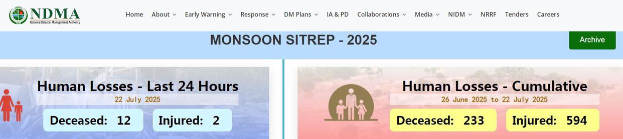 近日,巴基斯坦季风期的暴雨和山洪引发多起事故。7月22日,巴基斯坦国家灾害管理局数据显示,本季季风灾害已导致巴基斯坦各地233人死亡、594人受伤。其中旁遮普省受灾最严重,共有135人死亡,主要原因包括建筑倒塌、雷击和洪水。