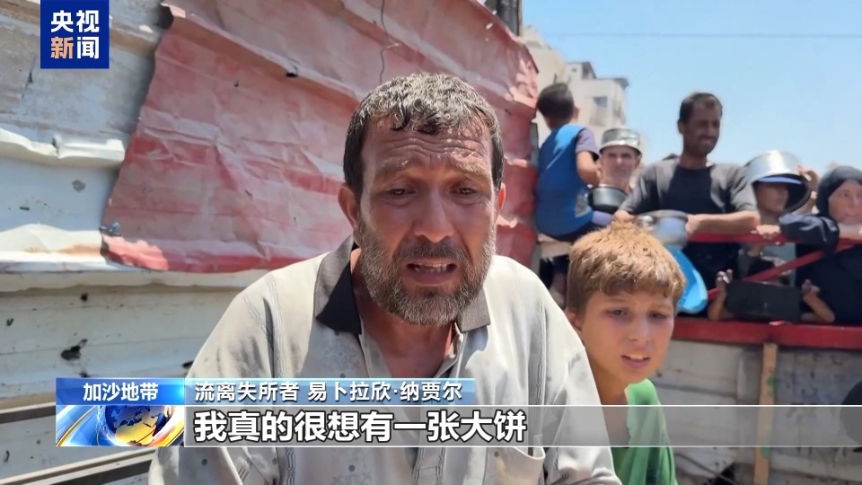 在加沙各地的援助点,饥饿的人们大排长龙,只希望能领到一点食物以果腹。来自杰巴利耶的流离失所者易卜拉欣·纳贾尔已经五天没有进食,此前他将获得的一点食物留给了孩子。易卜拉欣渴望一家人能够吃上一顿饱饭,但这样的愿望对于加沙地带的现状而言依旧是一种奢求。