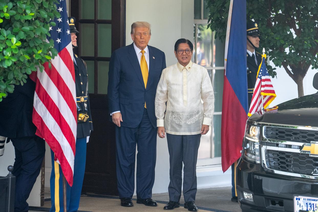 7月22日,美国总统特朗普(左二)在华盛顿白宫欢迎到访的菲律宾总统马科斯(右二)。新华社记者胡友松摄
