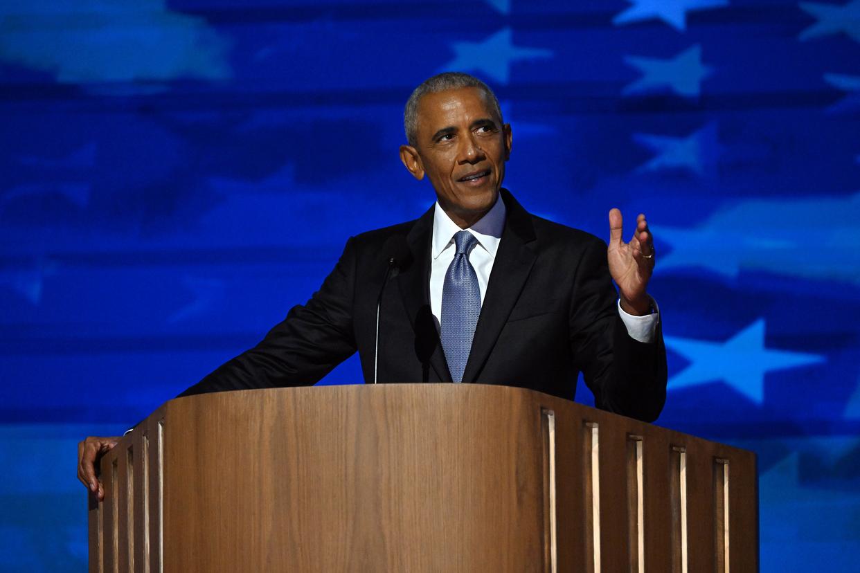 这是2024年8月20日在美国芝加哥拍摄的美国前总统奥巴马在民主党全国代表大会上发言。新华社记者李睿摄