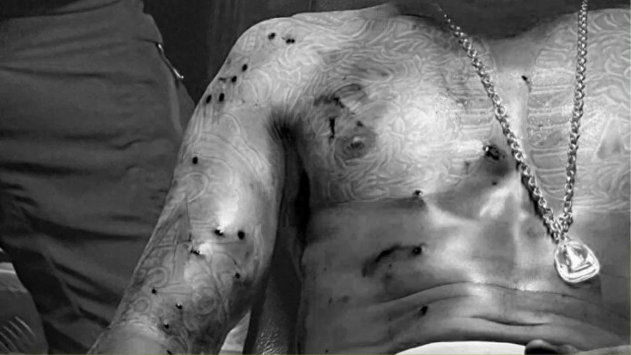 救援人员也称,当天他们接到报警后,立即前往调查。在靠近事发地时,他们听到了枪响,不得不暂停救援,等了一会儿。直到枪声停止,一辆皮卡车和一辆摩托车疾驰而去,他们才上前查看。当时,他们发现了受伤的拉克,他全身布满文身,还在四处走动,并称自己被枪击中了。