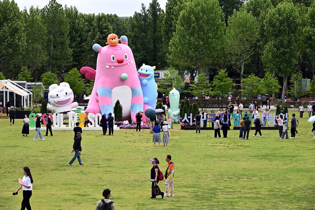 5月22日,游客在韩国首尔观赏园艺作品。新华社发(全休相摄)